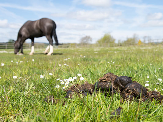 - Poo pick regularly to remove droppings from fields and tracks at least twice a week to remove parasite eggs before they hatch - this breaks the lifecycle mechanically without relying on chemicals. Research shows that regular poo picking is as effective as giving a wormer.